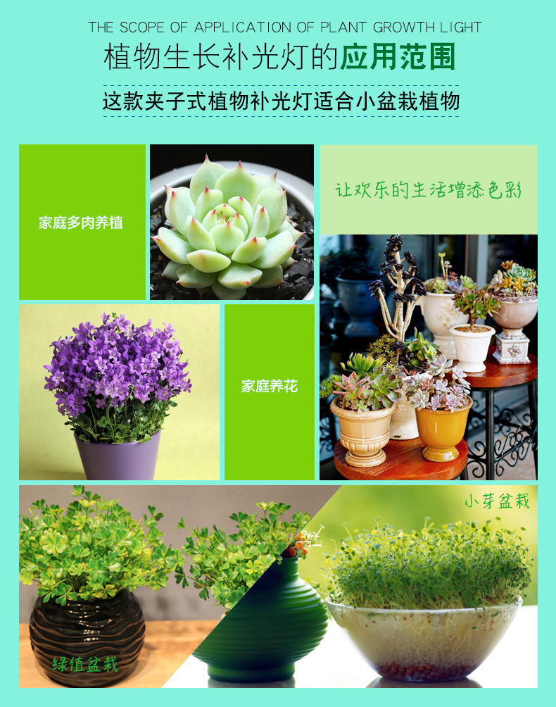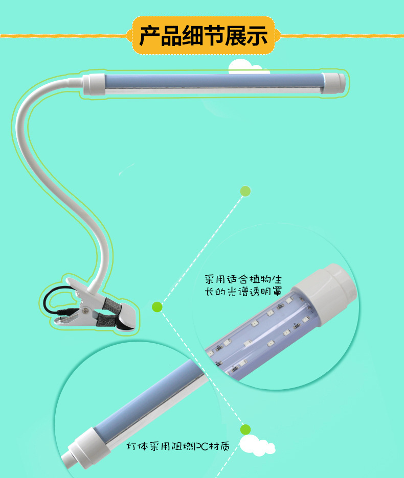 亚马逊热卖LED植物生长灯15W夹子灯红蓝光桌面夹子补光灯厂家LED补光灯批发防水灯管厂家