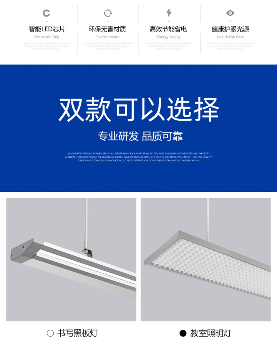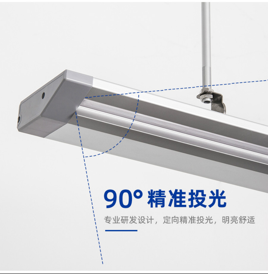 1、学校LED教室照明护眼灯去蓝光、防眩光,具有高透性,符合光学原理及人体视觉效果设计。