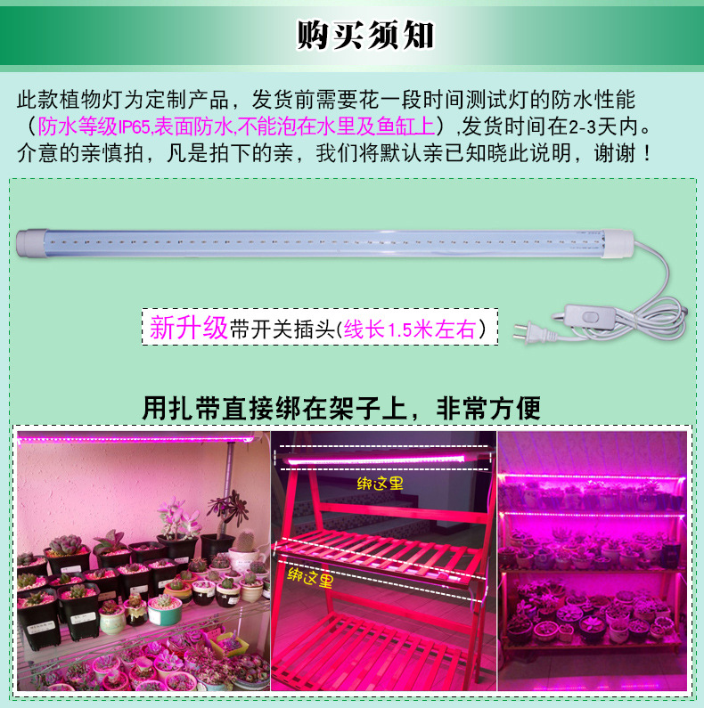 0.6米18WLED植物生长灯温室蔬菜种植灯管红蓝光植物补光灯育苗灯LED防水灯管厂家