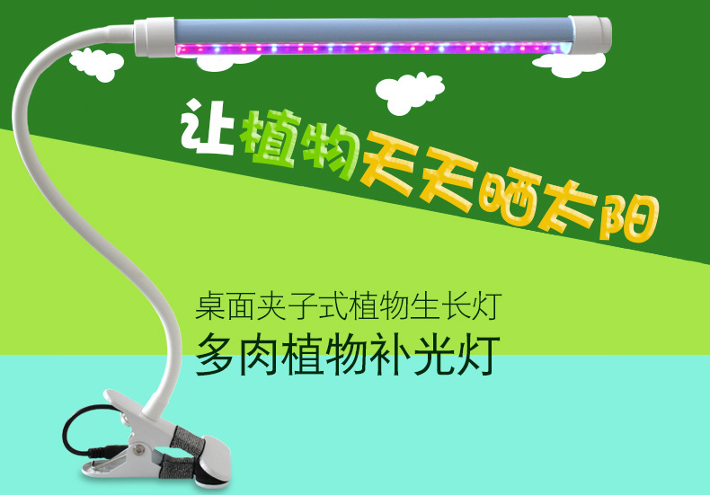 深圳LED植物灯生产厂家供应亚马逊热卖LED植物生长灯带定时调光15W红蓝光桌面夹子补光灯