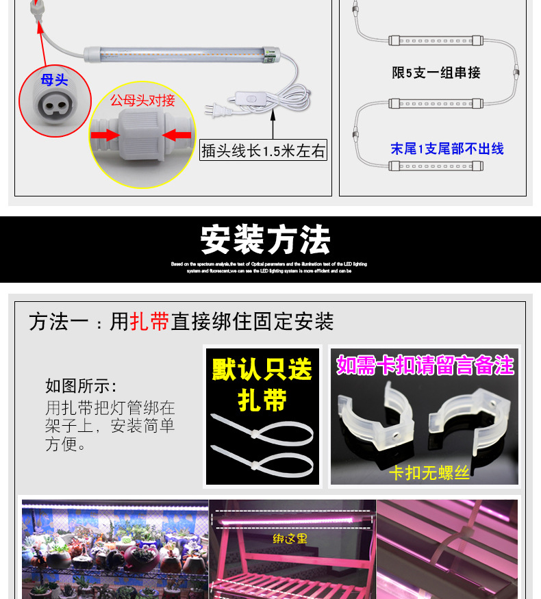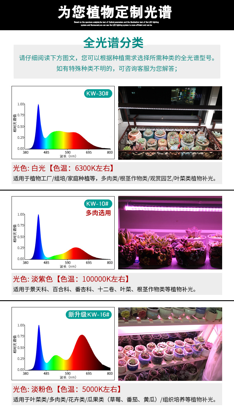 0.6米10W全光谱灯管LED多肉补光灯种植水培蔬菜育苗食虫草仿太阳植物生长灯