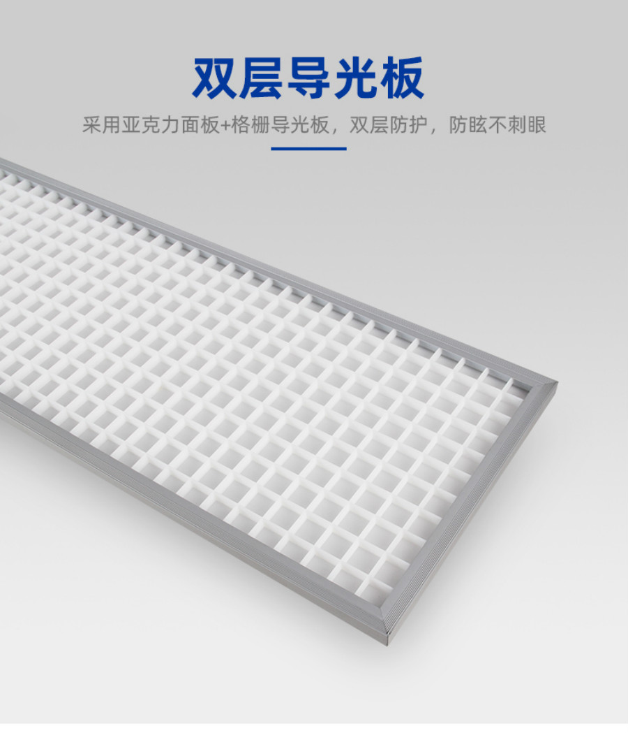 1、学校LED教室照明护眼灯去蓝光、防眩光,具有高透性,符合光学原理及人体视觉效果设计。