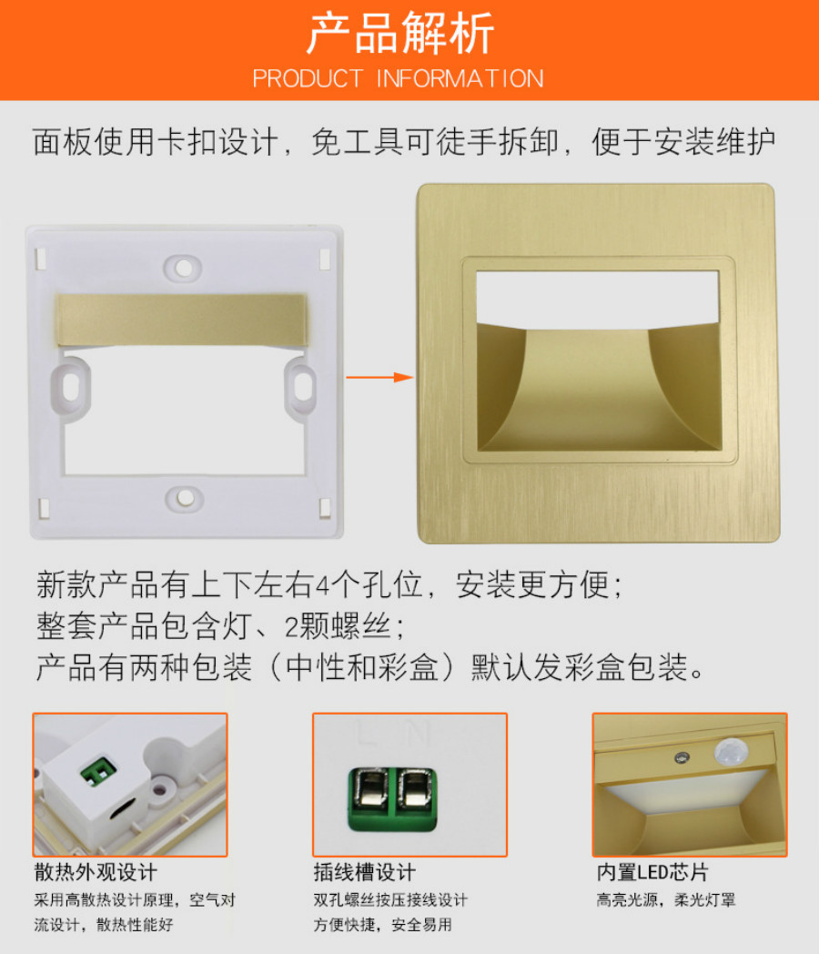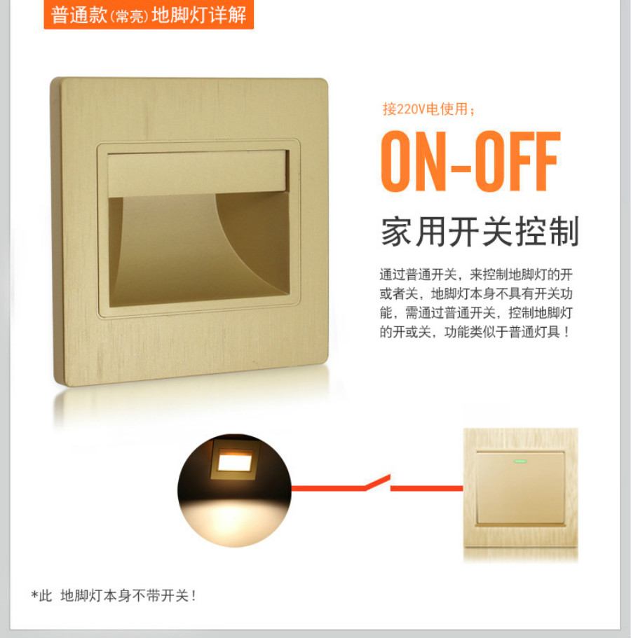 86型嵌入式地脚灯室内地脚灯墙角灯台阶灯踏步灯梯步灯室内感应地脚灯踢脚灯