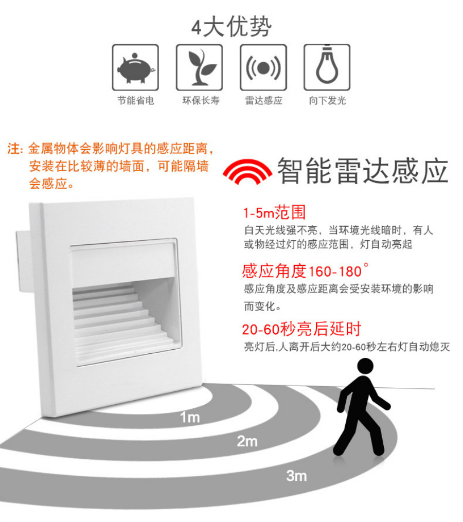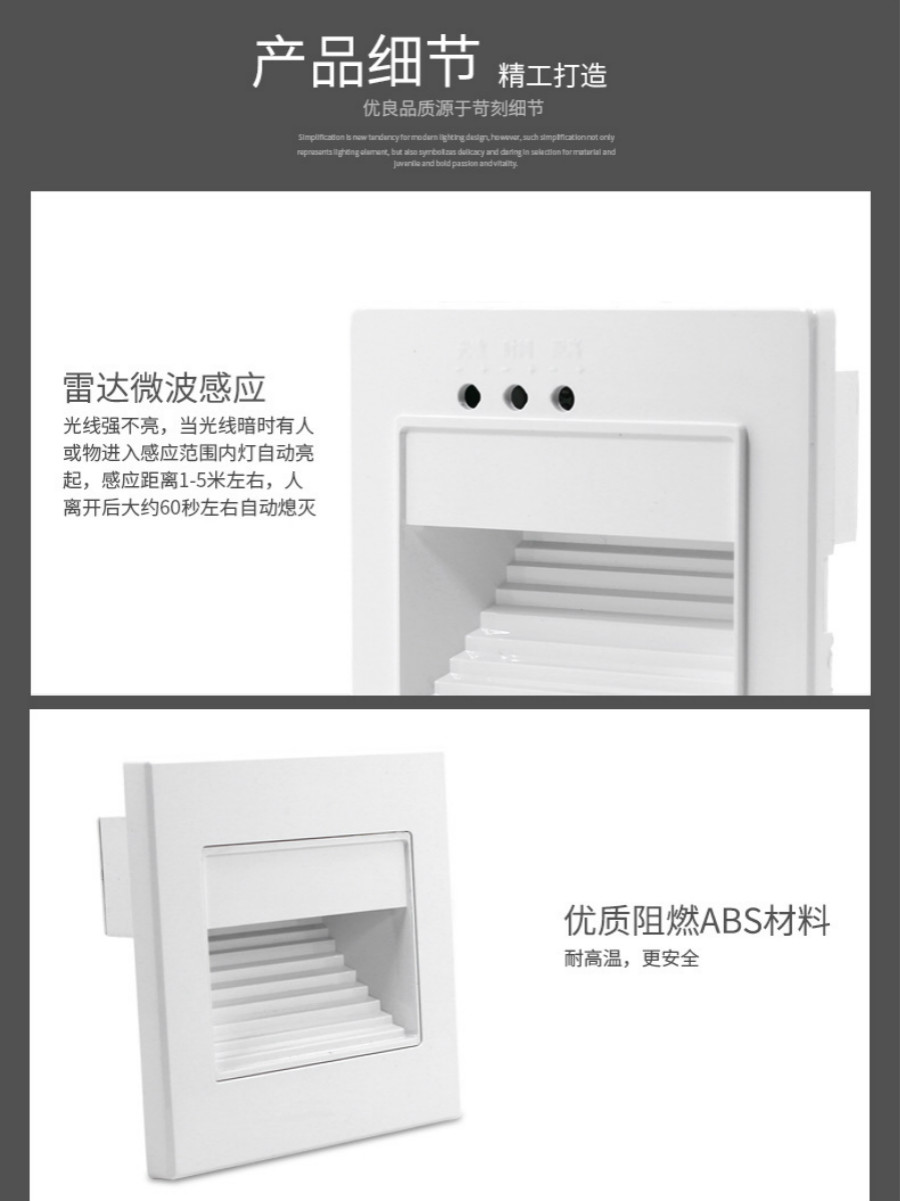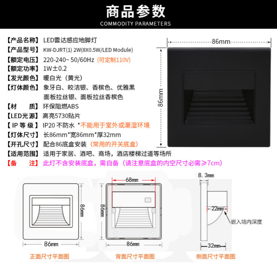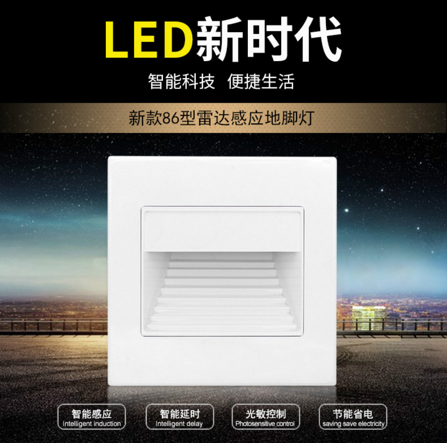 LED雷达感应地脚灯86型嵌入式踢脚灯过道灯墙角灯楼梯灯台阶灯踏步灯梯步灯