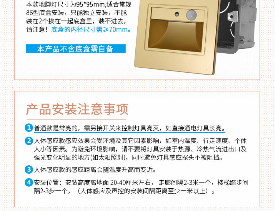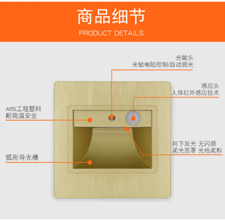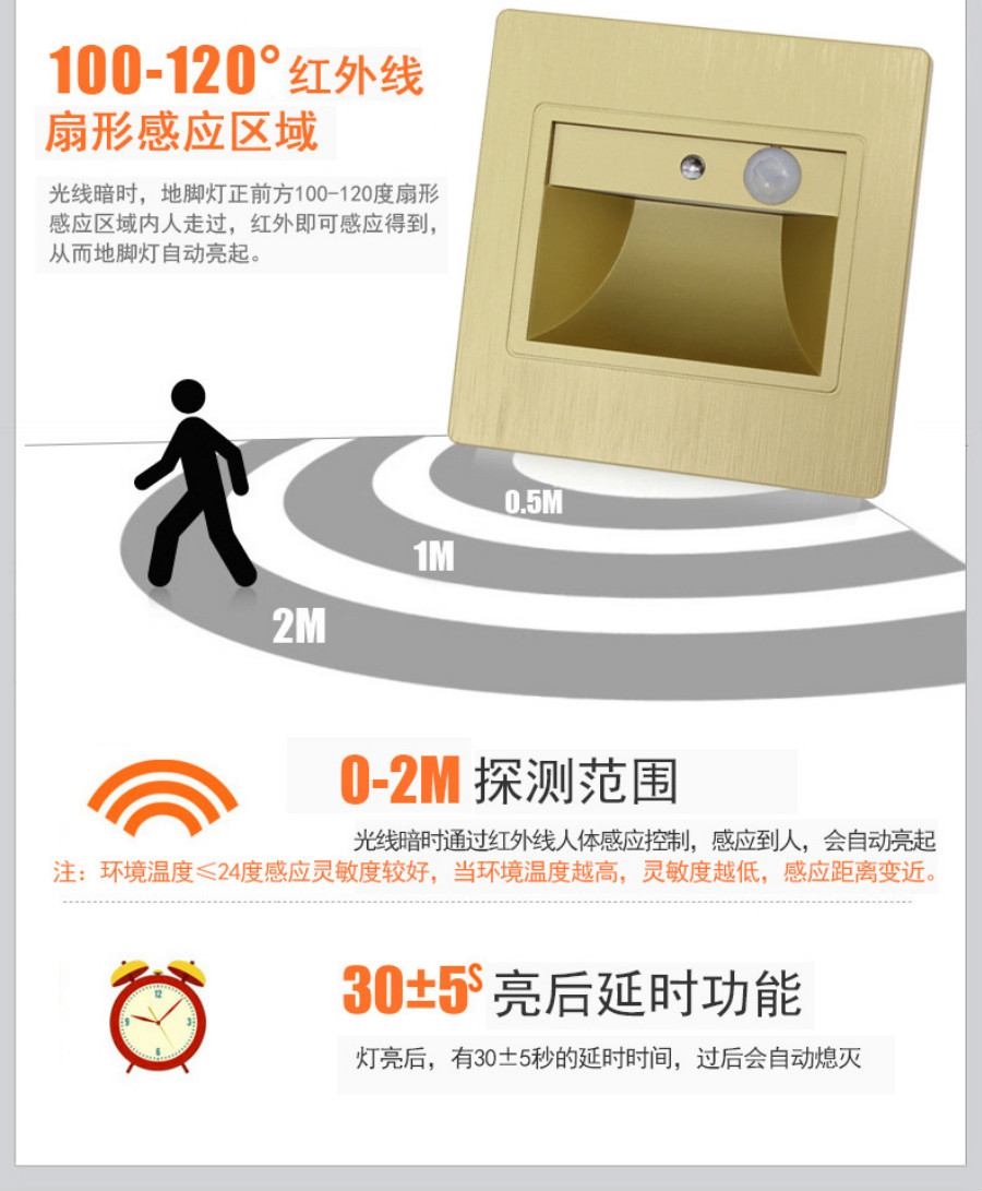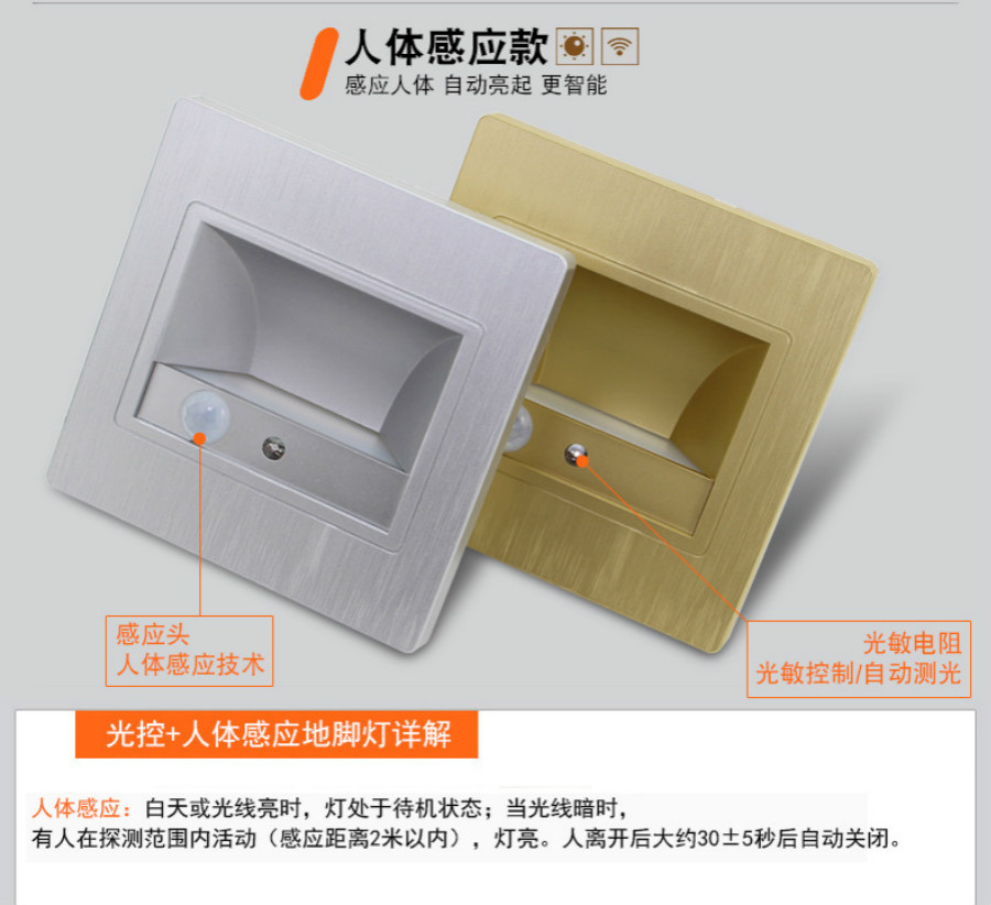 深圳地脚灯厂家人体感应86型LED地脚灯拉丝面板1W踢脚灯LED楼道灯
