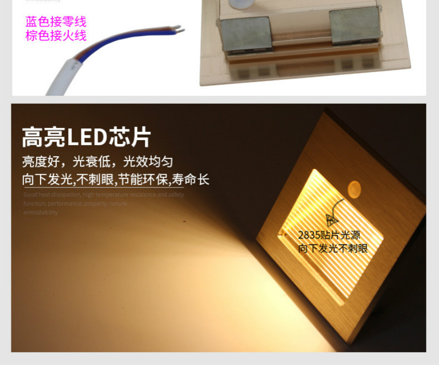 红外感应地脚灯3WLED地脚灯86型铝壳嵌入式地脚灯走廊过道灯楼梯踏步小夜灯